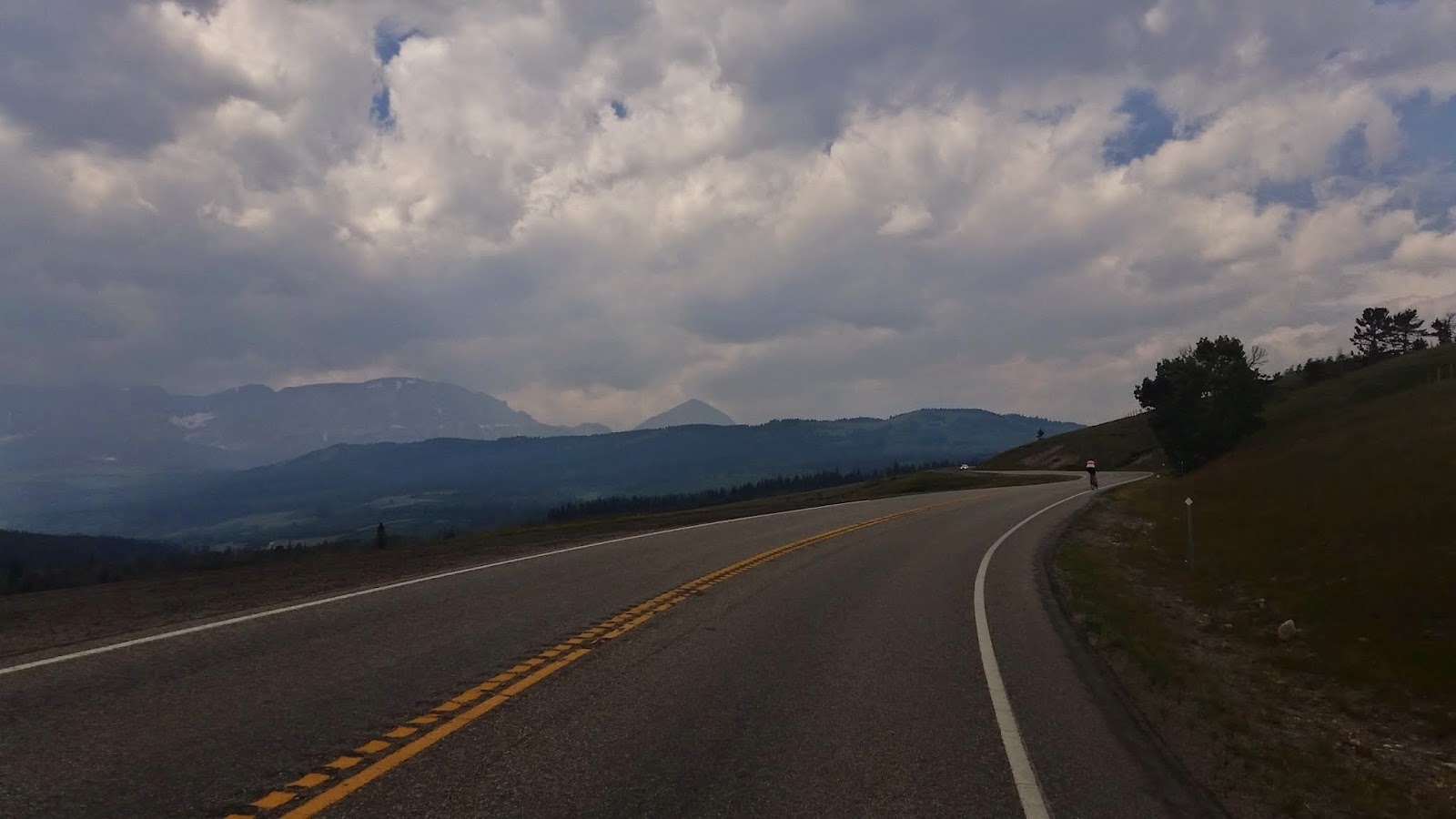 From here the hills blocked some of the wind so it wasn't as bad and it was only about 20 miles left to ride. The views were good, but smokey so a little limited. There were some good climbs and descents. I took some the of downhills easy when the wind started gusting. The last hill into Saint Mary was a different story. I bombed down it hitting 45 mph. There were several dips and bumps in the road and I am sure that on one of them I had both tires off the road after hitting it.